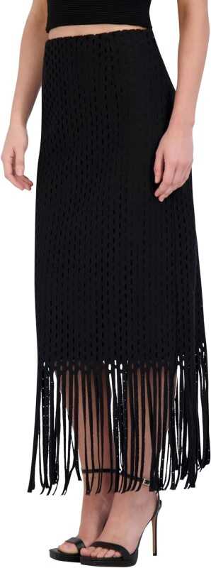 • SKIRTS: This skirt is fashioned with fringe lace, maxi length, and side zipper closure. Dry clean only.