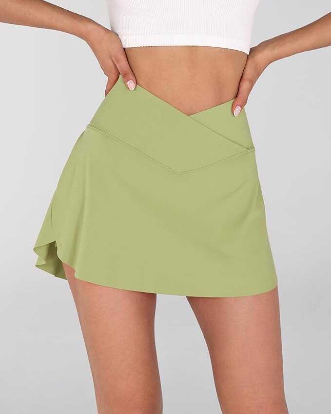 ➤CROSSOVER: Unique cross waist will greatly smooth your belly and stramline your waist's curve, elastic band keep the skorts right in place while bending or squating.