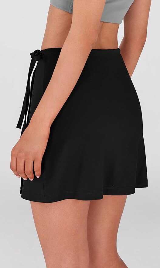 ➤FUNCTIONAL TIE: High rise faux wrap skirt with functional tie on top layer for easy adjustability for every body shape.