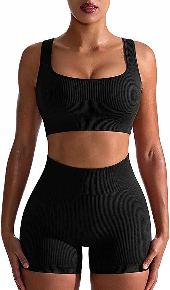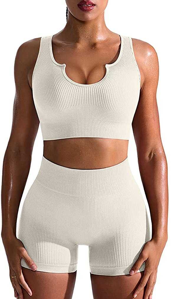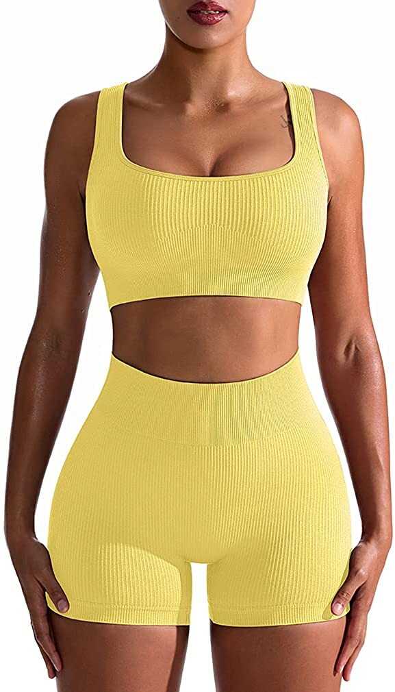 OQQ Workout Outfits for Women 2 Piece Seamless Ribbed High Waist Leggings with S