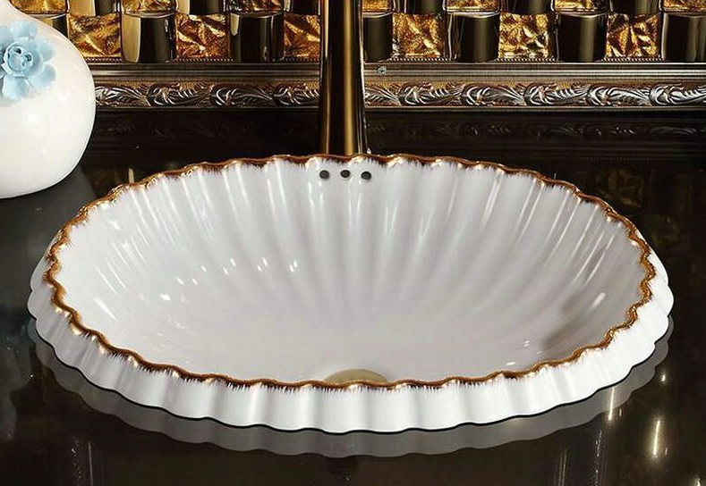 OVAL SEMI COUNTER WASH BASIN WITH OVERFLOW BATHROOM SINK WHITE PORCELAIN CERAMIC