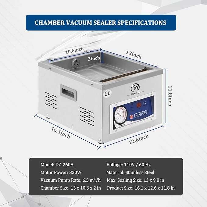 P PBAUTOS Chamber Vacuum Sealer Machine, with Micro Computer Control, DZ260A 110V/60Hz Food Packaging Sealer Machine with 6.5CBM/h Pump Rate, Applied in Home Kitchen and Commercial Use