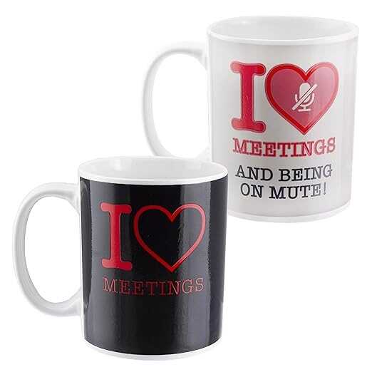• I love meetings: the perfect gift for anyone who gets excited by well ordered meetings, or meetings about meetings, or even meetings about meetings about yet more meetings, the I love meetings mug offers perfect stimulation and refreshment during meetings all day, everyday