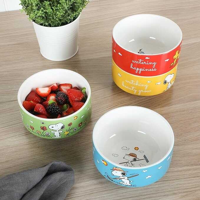 Peanuts Snoopy 4 Pack Stackable 5.5" Decorated Stoneware Bowl Set