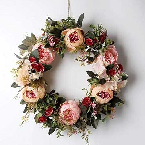 Peony Spring Wreath for Front Door, Handmade Pink Floral Wreath Artificial Spring Garland Wreath for Front Door Wall Wedding Party Home Deco