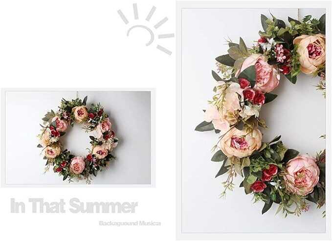 • <b>3.Perfect Decoration</b><br>Wreath can be used indoor or outdoor making it a versatile decorative accessory. Hang it above your fireplace, on your front door, or on a living room wall. This pink wreath will bring an enjoyable ambiance all year round.