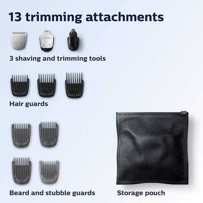 • 13 pieces for all of your grooming needs: Beard and stubble trimming and maintenance, precision trimmer allows exact placement for sharp lines, nose and ear trimmer taking care of unwanted hairs