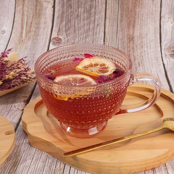 • ☕Vintage Design: These pink coffee mugs feature a vintage design with a clear glass body that shows off the beautiful color of the coffee, while the wooden lid and spoon add warmth and unique style. The grain and detailing of the cups are unforgettable and make coffee savoring even more pleasurable.