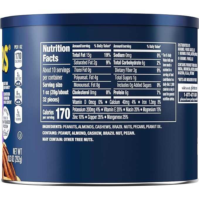 PLANTERS Roasted Unsalted Mixed Nuts, 10.3 oz Canister