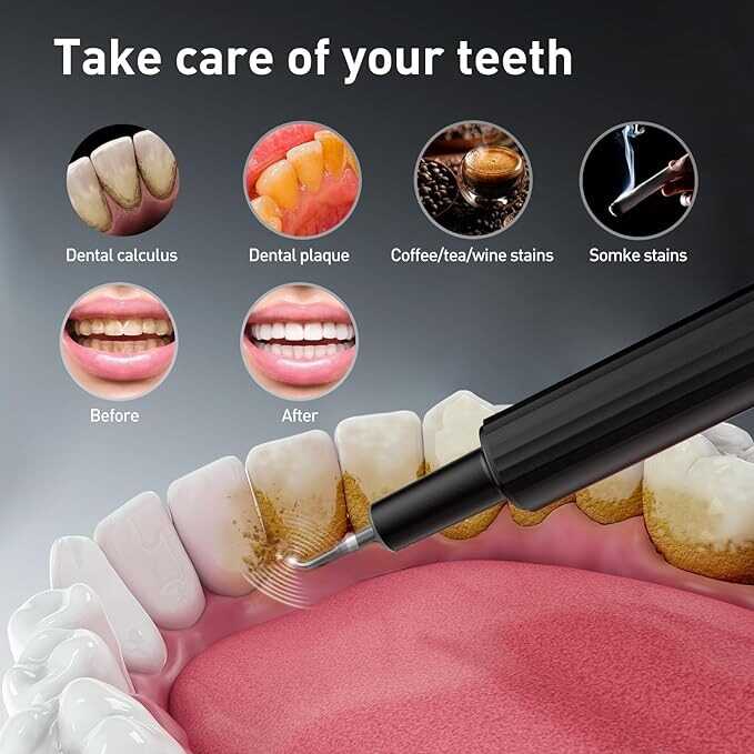 • ✅High Efficiency: Use high -frequency vibration technology to remove tools. Compared with manual dental tools, it can effectively remove dental plaque.