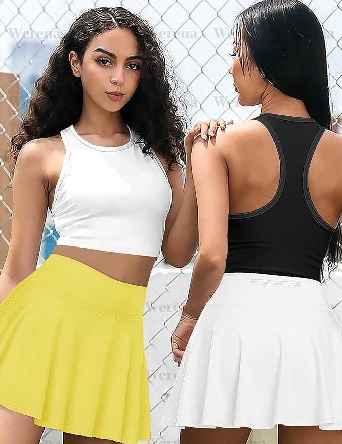 • Soft, Breathable, Lightweight--- Our werena pleated tennis skirts made of polyester and spandex, which features 4-way stretchy, breathable, quick-dry, and moisture-wicking but not see through. High waisted workout skirt providing superior comfort for a weightless feel to your activity. Really nice quality that comfortable to wear in all seasons.