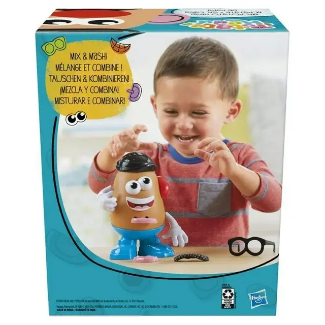 Welcome to the wonderfully wacky, mixed-up world of Potato Head toys! Kids can create all kinds of funny looks, and feel free to giggle and laugh at their funny creations. This version of the classic Mr. Potato Head toy includes a large potato body, a base with feet, and fun accessories including a nose, ears, moustache, hat, and glasses. With its classic play pattern, it's no wonder it's been a favorite for over 65 years. The toy makes a great birthday gift and holiday gift for boys and girls ages 2 and up. Most parts are compatible with other Mr. Potato Head and Mrs. Potato Head toys. (Each sold separately. Subject to availability.) Potato head, Mr. Potato Head, and all related characters are trademarks of Hasbro.•THE MIXED-UP WORLD OF POTATO HEAD TOYS: Kids can let their imagination and creativity sprout with this classic Mr. Potato Head figure. It comes with lots of parts and pieces to create all kinds of wacky looks•INCLUDES 13 PARTS AND PIECES: The toy includes 1 large potato body, a potato base with feet, and fun plug and play accessories including his iconic derby hat, moustache, glasses, and happy smile•MAKE, MIX, LAUGH: Get ready for giggles galore when your little one discovers all the possibilities when playing with the Mr. Potato Head or Mrs. Potato Head toy. (Each sold separately.)•A FAVORITE TOY FOR GENERATIONS: Remember playing with the Potato Head toy when you were a child? Introduce your kids to this version of the classic toy that invites every spud to be what-tater they want to be•FUN GIFT FOR KIDS: The Potato Head toy makes a great holiday gift or birthday gift for toddlers, preschoolers, and kids ages 2 and up•Ages 2 and up•