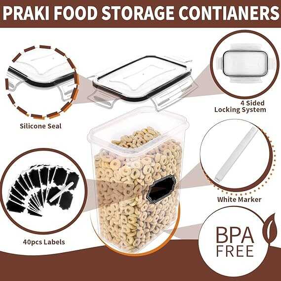 ?Premium Materials--- You won't have to worry about the health of your family, as PRAKI airtight food storage containers for pantry set is made of premium plastic. These pasta storage containers for pantry make it easy to find the food item in the cabinet.