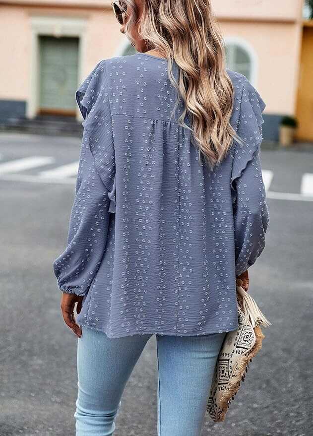 • Design: Swiss dot fabric make this blouses for women fashion suitable for both dressy and casual occasions. Crochet and pleats at bust make this long sleeve tops feminine and chic, ruffle shoulder add cuteness for this blouses for women. Loose fit and tunic length are designed to be suitable for all body type, which can covers your hips