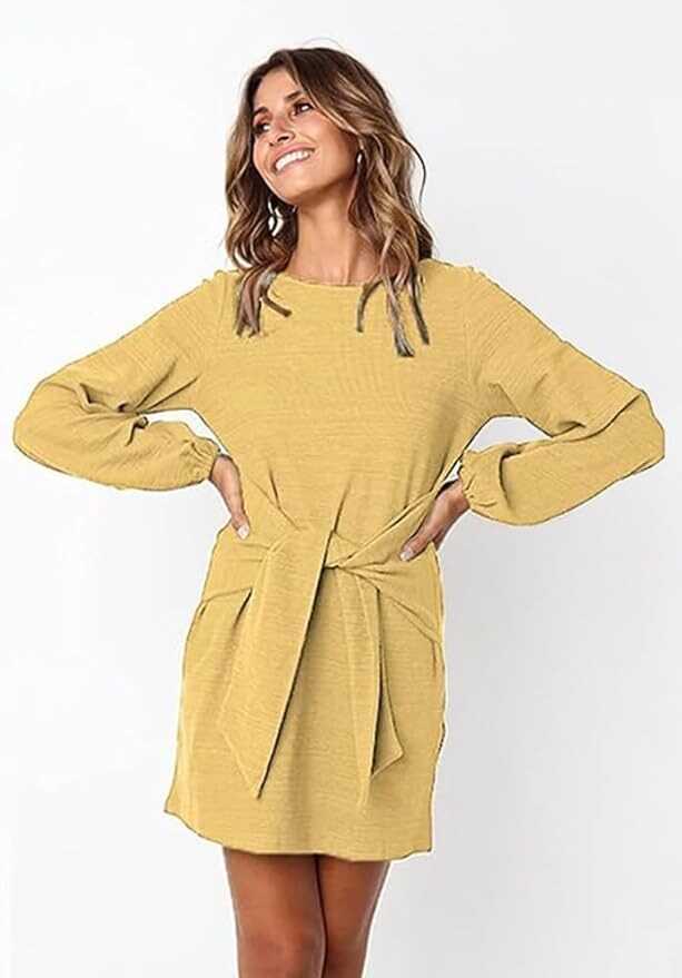Features: Womens Fall Fashion 2023,Above knee length,Lantern Long Sleeve,Round Neck,Belted,Lightweight,Breathable,Solid Color,Casual Style,Office,Wear to Work