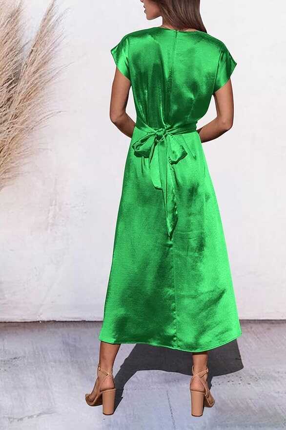 STYLISH FEATURES: The Satin Dress Features In Tie Waist In The Back, Adds A Sense Of Elegance And Classy. Women Midi Dress With Cap Sleeve Design Never Out Of Date, Shows Off Your Generous And Gorgeous. This Crewneck Swing Dress Is Lightweight And Breathable, Easy Dress Up And Down. Ladies A-Line Dress Can Modify Your Figure Well, Hide The Little Tummy. Classic Solid Color Style More Easy To Match Attractive And Fashionable Looks.