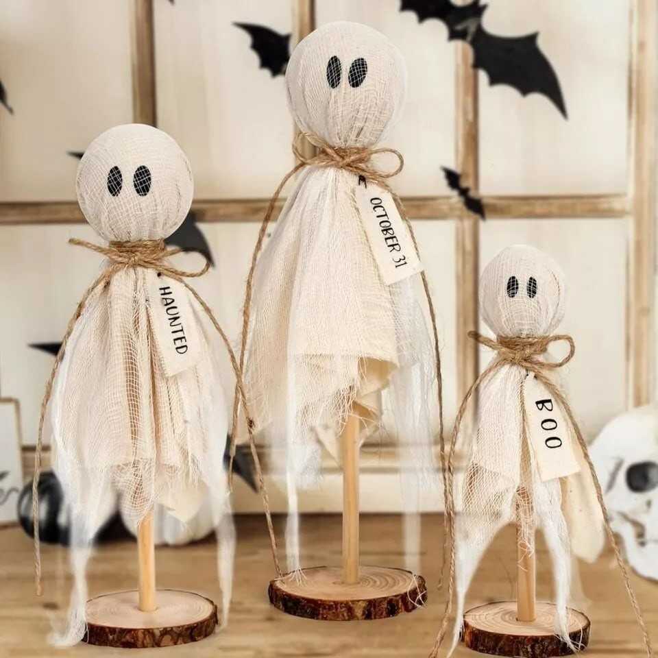 Primitive Set of 3 Halloween Ghosts Spooky Ghost Ornaments