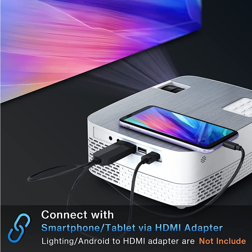 The Q5 projector with a tripod is compatible with a Fire TV Stick, Smartphone, Roku Express and laptop, which makes projecting any kind of media incredibly easy and convenient for a variety of applications and situations.(Notes: HD Adapter, Fire TV Stick and Roku Express are not included)