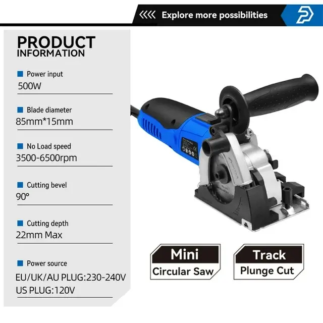 • Prostormer 3-3/8 inch mini circular saw features a compact, lightweight design that makes it easy to operate. Designed with 4.2 Amp motor and 3500-6500 RPM variable speed for handling applications. This electric mini saw cleanly cut through wood, soft metal, plastic and other materials without burning or melting.