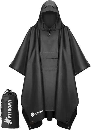 • [VERSATILE APPLICATION] One size fits most. PTEROMY rain ponchos adult is designed breathable and will keep you dry for outdoor activities of any kind such as hiking, camping, picnic, and outdoor game watching. Great gift idea for hunting gear for men, rain gear, or bushcraft gear