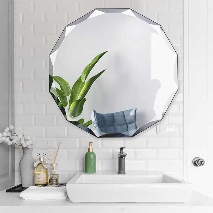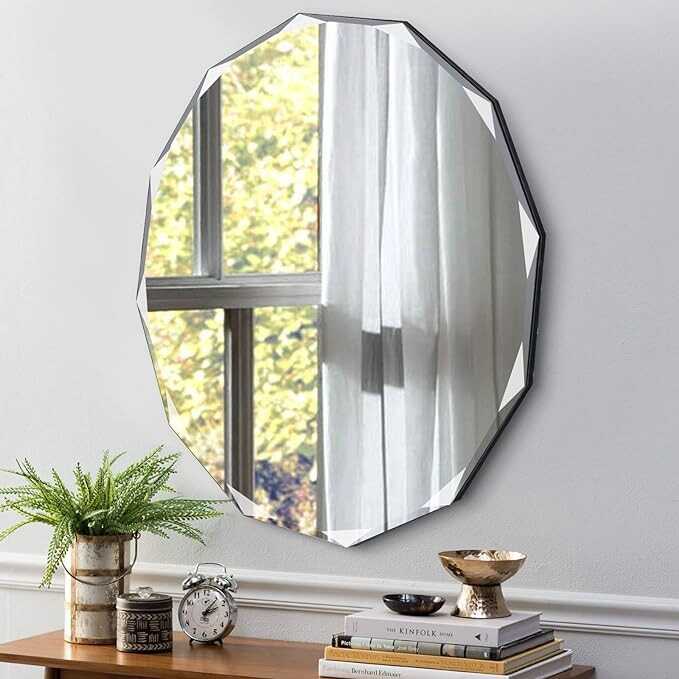 QDSSDECO 24" x 24"Beveled Edge Frameless Wall Mount Mirror, Irregular Shaped, Unique Vanity Mirror, Frameless Wall Mirror for Bathroom, Living Room, Bedroom, Entryway