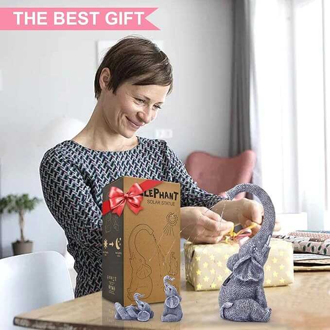 • 【Beautiful Home Garden Decor and Great Gifts】The resin elephant statues with solar lights suitable for garden decor/home decor/house decor/lawn ornaments/front porch decor/yard decorations outdoor/back decor/backyard decor. A perfect choice as birthday gifts for Mom/Women/Grandma/Wife/Daughter/Sister/Aunt White Elephant gifts Fathers Day /Mothers Day gifts Christmas gifts Diwali gifts