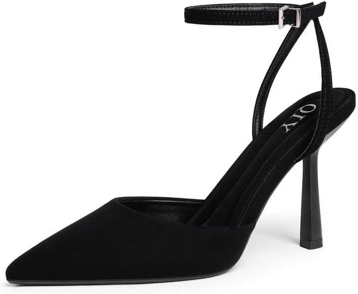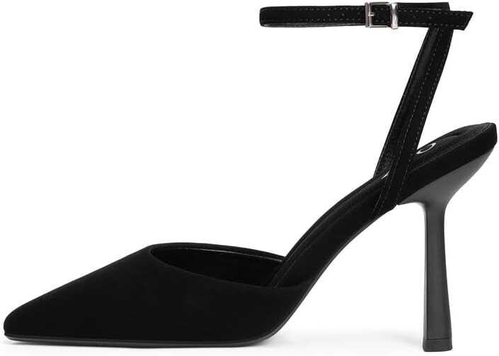 ? Solid black heels with classic pointed toe, ankle strap and stiletto heels design, cute and stylish. Work well for dressy or casual occasions.
