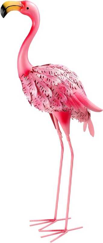 Lifelike:The flamingo statues are so realistic,made by welding feathered metal blades with layered textures, pink hand-painted to bring the color closer to the real flamingo.