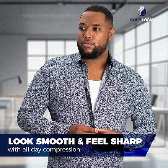 • T r a n s f o r m Y o u r S h a p e – Take back your physique with your compression tank tops for men from QORE LOGIQ! Our mens shapewear is specifically designed to minimize gynecomastia, your mens shaper vest slims your chest, tummy, and sides, being the ultimate chest binder and corset for men!