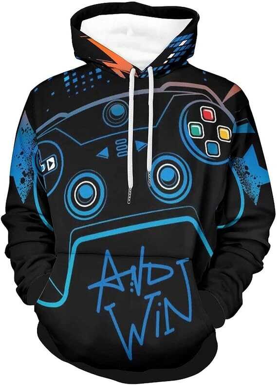 RAMINTSE Video Game Weapon Gamer Play Gaming Men's Long Sleeve Hooded Sweatshirt with Pocket Loose Classic Pullover Lightweight Cozy Soft Hoodie, XL