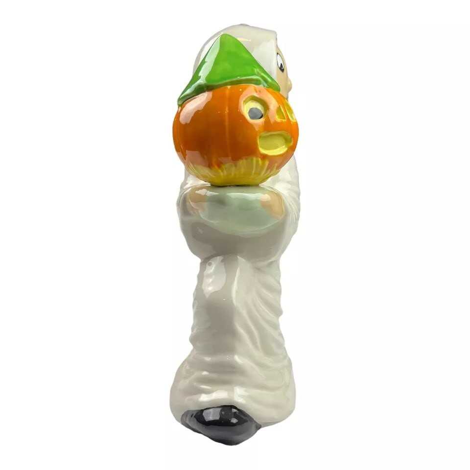 Vintage 12" Ceramic Ghost Holding Pumpkin/Jack O Lantern Head Halloween.