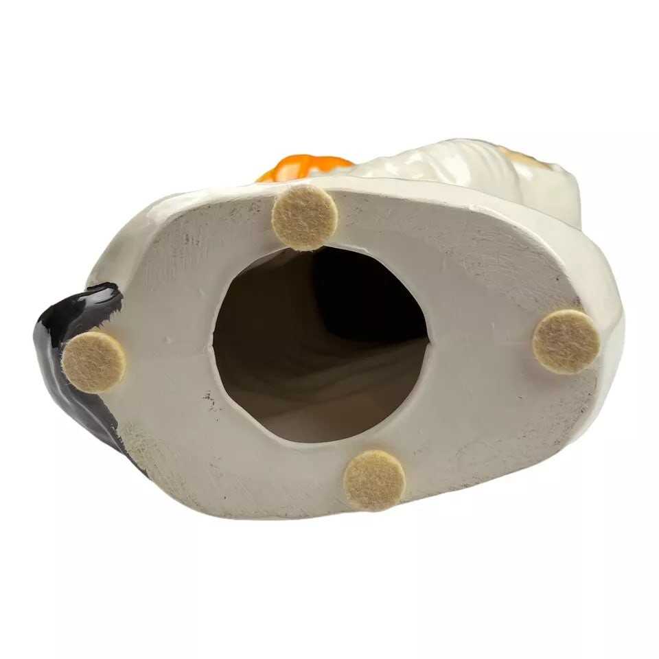 I’m unsure if the pumpkin head has been glued back on or was added. You can see glue under the pumpkin.