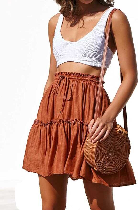 • STYLISH DESIGN: Polka dot print makes you more fashion. High elastic waist makes you more attractive. Ruffle makes this skirt simple but elegant and classy, helps you show your unique charming.