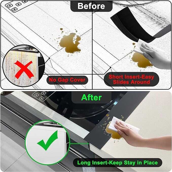 Roll over image to zoom in 7 VIDEOS Silicone Stove Counter Gap Cover / Filler by Kindga 25" Long, Sealing Spills Between Kitchen Appliances Washing Machine and Stovetop, Set of 2 (Black)