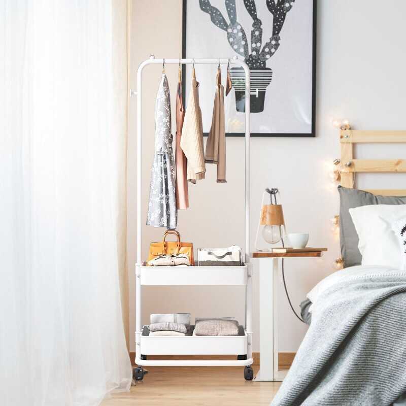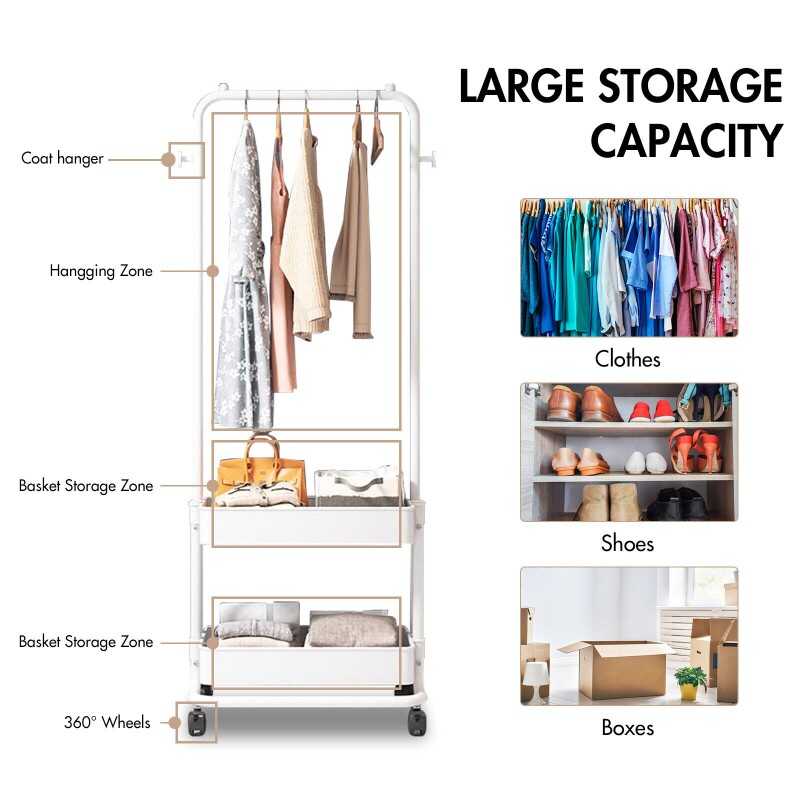Stackable, w/Coat Hooks, Portable, Rolling, Hanging, With Baske, Clothes Hanging Bar
