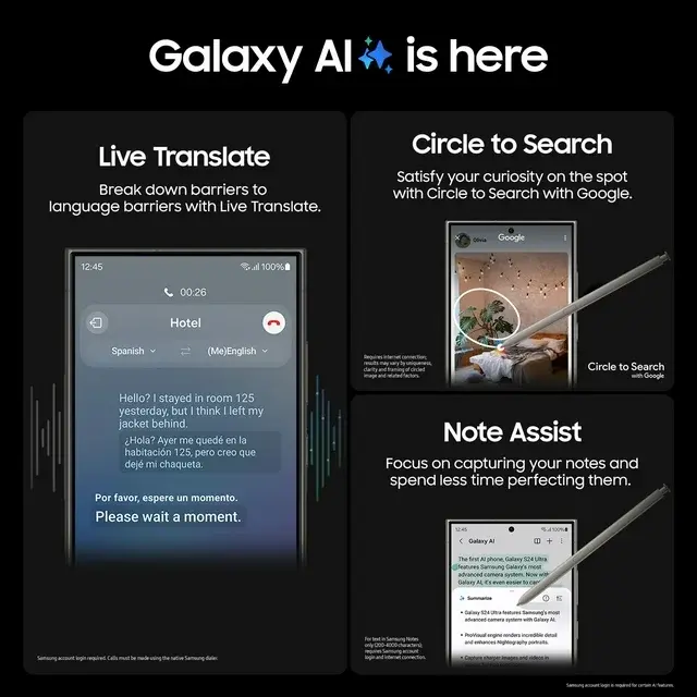 Do more with the most epic Galaxy yet. Wondering where the cool museum that your favorite influencer visited is located? Simply Circle to Search* with Google and start planning your own trip to the Louvre. Then get ready to experience local flavors by calling ahead with Live Translate** to make a reservation in French, even if all you know is “Bonjour.” Capture every detail of your candlelight meal with impressive Nightography and zoom in to see the live violinist playing across the room. Once you’re back in your hotel, elevate your pics from good to great right on your Galaxy S24 Ultra. You can even use your built-in S Pen to add fun doodles before posting. Unleash new ways to create, connect and more with Galaxy S24 Ultra. Epic, just like that. *Requires internet connection; results may vary by uniqueness, clarity and framing of circled image and related factors. **Samsung account log-in required. Calls must be made using the native Samsung dialer.