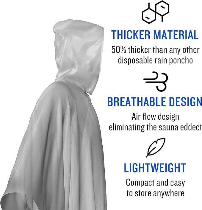 • [Occasions]: The disposable poncho is perfect for Disneyland / amusement parks / travel / camping / hiking / tailgating / concert / hiking / fishing / stadium and other outdoor activities.