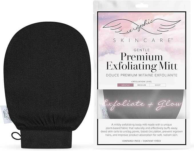 Seraphic Skincare Premium Exfoliating Mitt for Body, Gentle – Viscose Fiber Korean Exfoliating Glove for Sensitive Skin – Body Exfoliator for Self-Tan Removal and Application