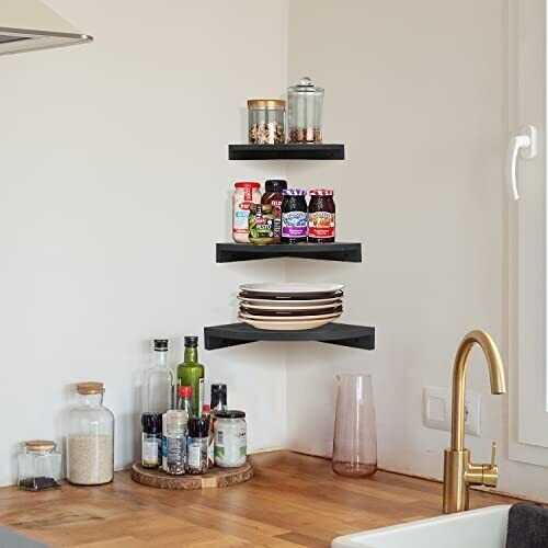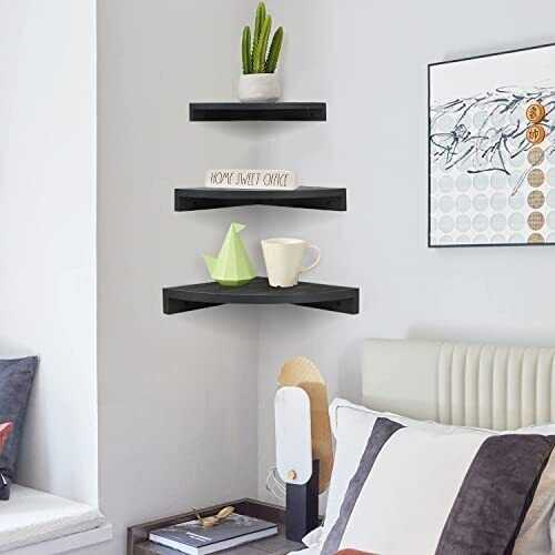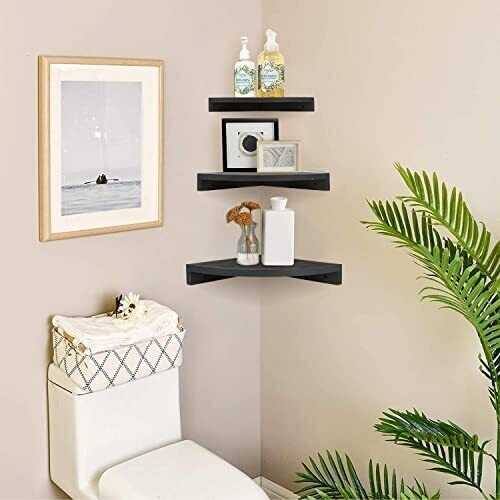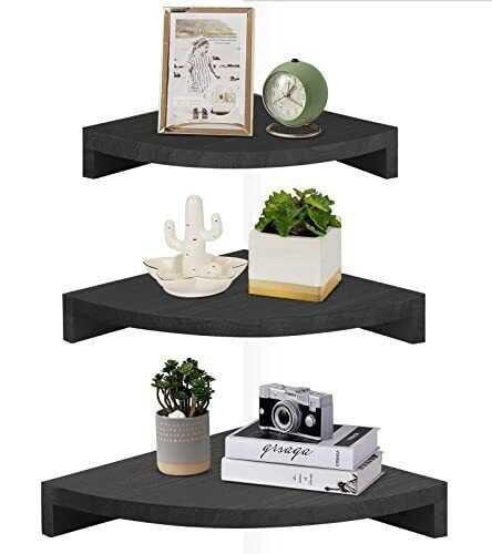 Set of 3 Corner Wall Mounted Shelf Wood Floating Storage Hanging Shelves Display