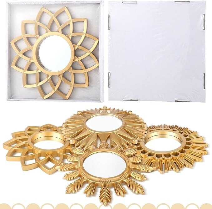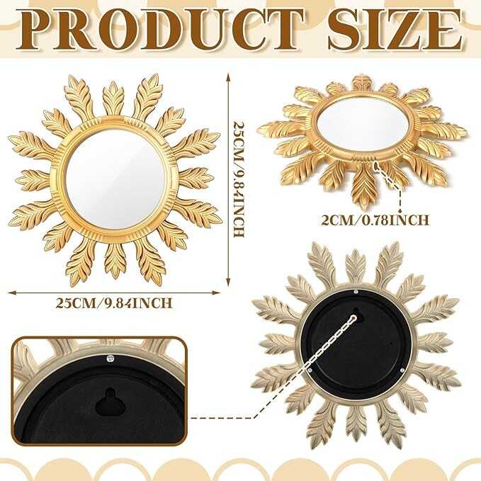 • Gold Plastic Flower Mirrors: The gold flower mirrors for wall decor come in a pack of 4, which are about 9.84 x 9.84 x 0.79 inches with the PVC frame, the diameter of the glass is about 3.94 inches, allowing you to use the small round mirror to decorate several rooms, these decorative round mirrors are plastic frame and painted gold, ideal wall decor for living room, bedroom, hallway, lounge and office