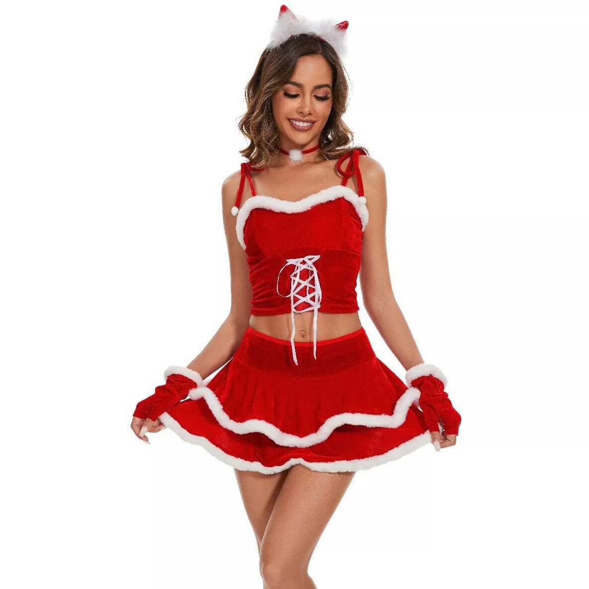 Sexy Christmas Costume Suit Santa with Shawl Women Dress Outfits Birthday Party