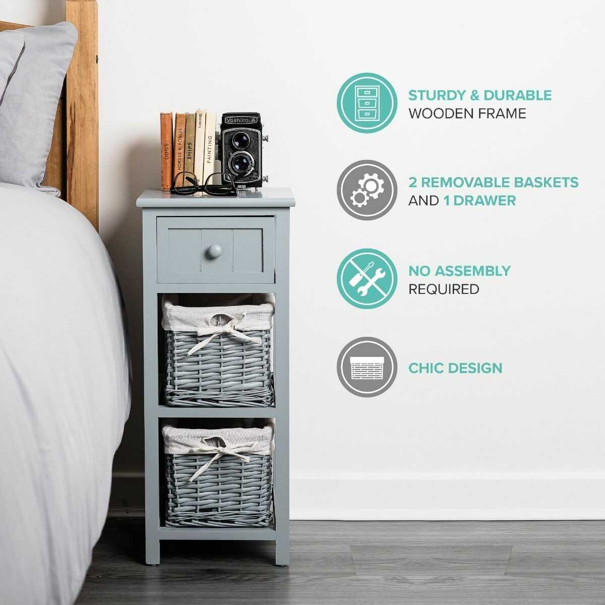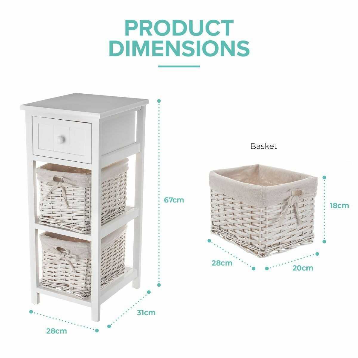 Shabby Chic Bedside Unit Tables Drawers Cabinet + Wicker Storage Wooden Bedroom