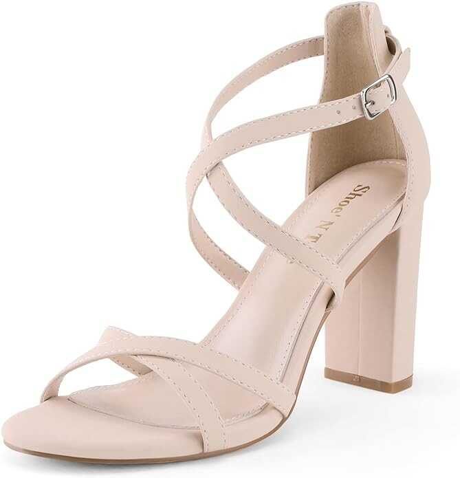 Shoe'N Tale Chunky Block High Strappy Heels for Women Pump Heeled Sandals Open Toe Ankle Strap Buckle Party Wedding Prom Dress Shoes