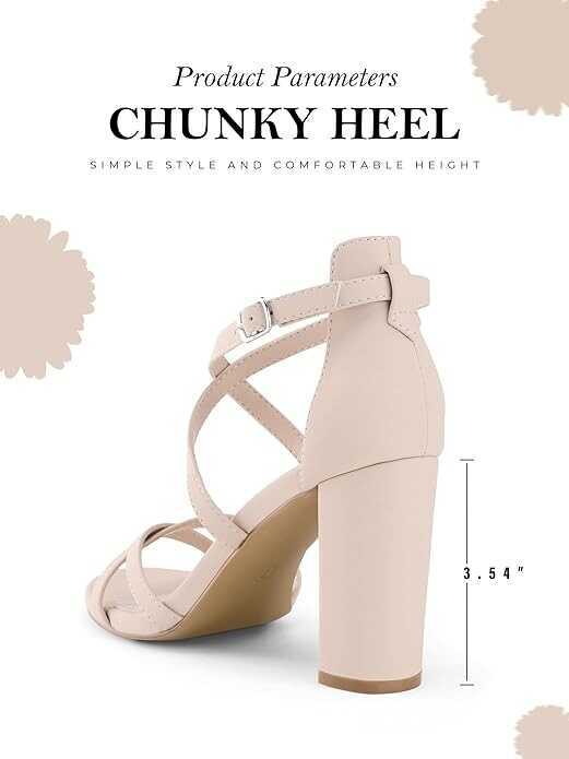 • 【DESIGN】The cross-strap design offers support in multiple directions. Featuring a metal buckle for secure closure, these block heels allow you to adjust them to the perfect position on your ankle. This ensures both a snug fit and stability during wear.