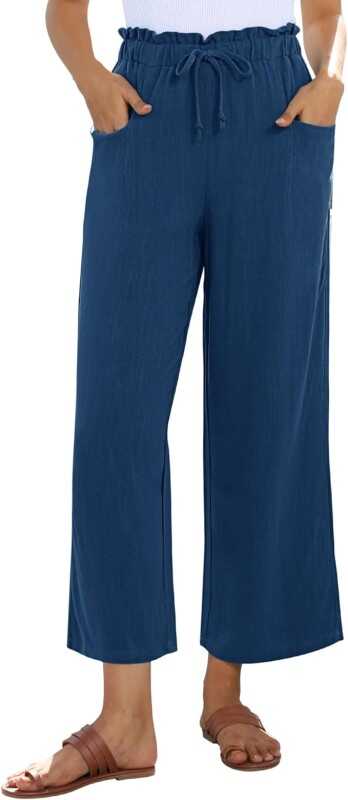 • Feature: Casual Linen Pants, High Waisted, Wide Leg, Flowy Pants, Elastic Waistband, Drawstring, Capris for Summer, Two Side Pockets, Easy to Pull On, Solid Color, Loose Fitting, Soft Linen Cotton, Palazzo Pants for Women Casual. Easy to Wear and Suitable for Most People