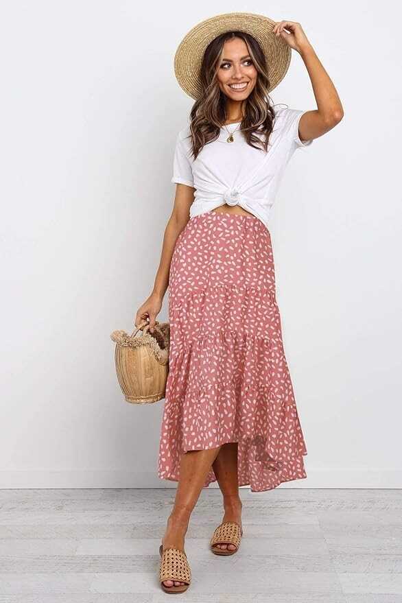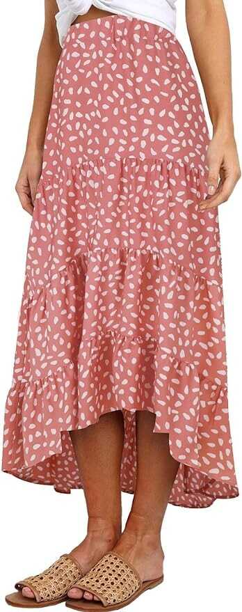 • ✿ Features: Bohemian long skirts with ditzy floral printed, elasticized waistband gives you optimum comfort, and plus the flowy high low hem with a tiered gathered design, the shorter length in the front makes it look a bit fancier than regular skirts, easily dresses up or down, pairing with a basic knotted tee and wedges or sandals to the upcoming beach vacation.