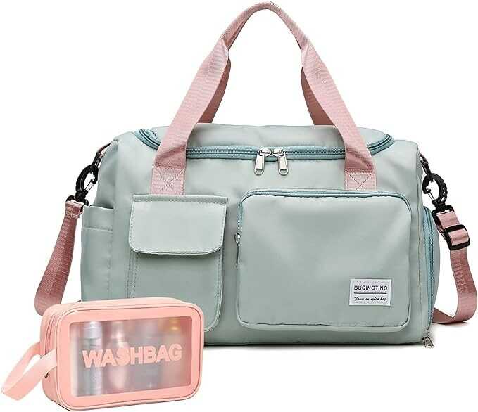 Small Gym Bag for Women, Waterproof Duffle Bag Carry On Weekender Bag with Shoe Compartment & Wet Pocket, Tote Bag for Travel, Workout, Sport
