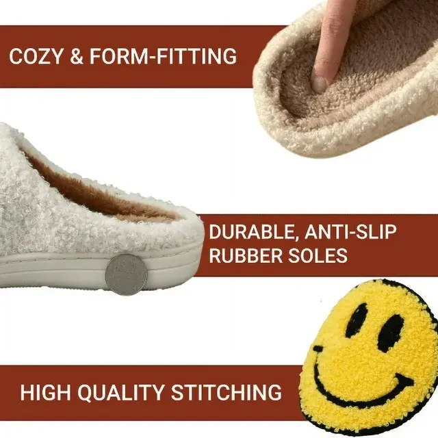 Quality & Satisfaction: We make sure these happy face slippers are made to last spring to winter. You'll love these happy face slippers - if not, we'll happily exchange or reimburse you, no hassle!