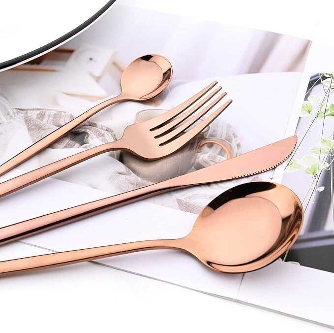 Snplowum 24-Piece Mirror Copper Polished Flatware, 18/0 Stainless Steel Dinnerware Set Include Knife Fork Spoon Teaspoon Cutlery Set For Home Restaurant and Party Service For 6, Dishwasher Safe