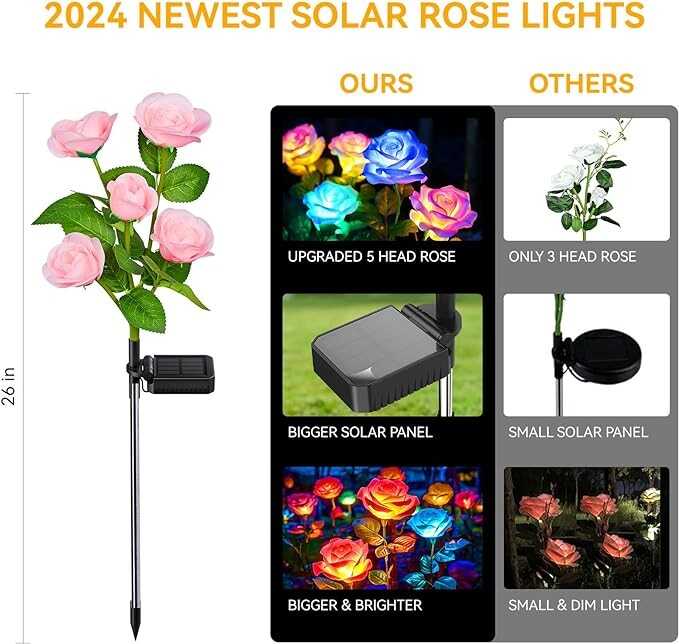 Perfect Mother's Day Gift Choice: These solar outdoor rose lights decorative are not only the perfect gift for Mother's Day, but also good for a stunning garden decorations. With their exquisite design and thoughtful features, they show your appreciation and love for your mom in a unique and special way.
